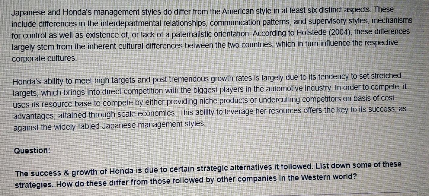 Solved Honda - Strategies for success u0026 growth It was Chegg.com